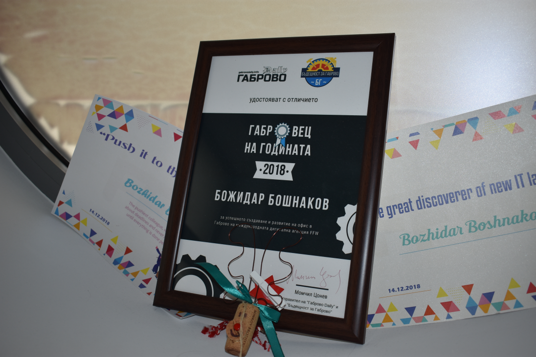 Срещата с него ни отведе в офиса на компанията, намиращ се в бизнес сградата, точно до двата моста в Габрово. Първото впечатление – модерен и технологичен офис, място, в което не само работиш, но и се чувстваш комфортно – пантофи под бюрата, големи удобни пуфове, дори и кухненски сектор, купа с плодове и аромат на кафе. Посрещна ни млад човек, усмихнат, динамичен и много словоохотлив – Божидар Бошнаков. Ето какво сподели той: