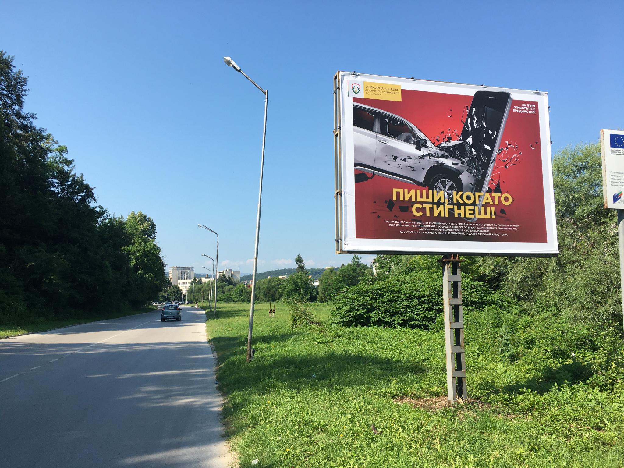 За всяка от темите са разработени единни визии, които вече могат да бъдат видени и в Габрово. Няколко билборда и лед изображения призовават водачите и пешеходците в града да бъдат разумни на пътя, напомнят рисковете от отклоняването на вниманието при ползване на мобилни телефони по време на движение и опасността от шофиране без обезопасителен колан, и с несоъобразена или превишена скорост.
