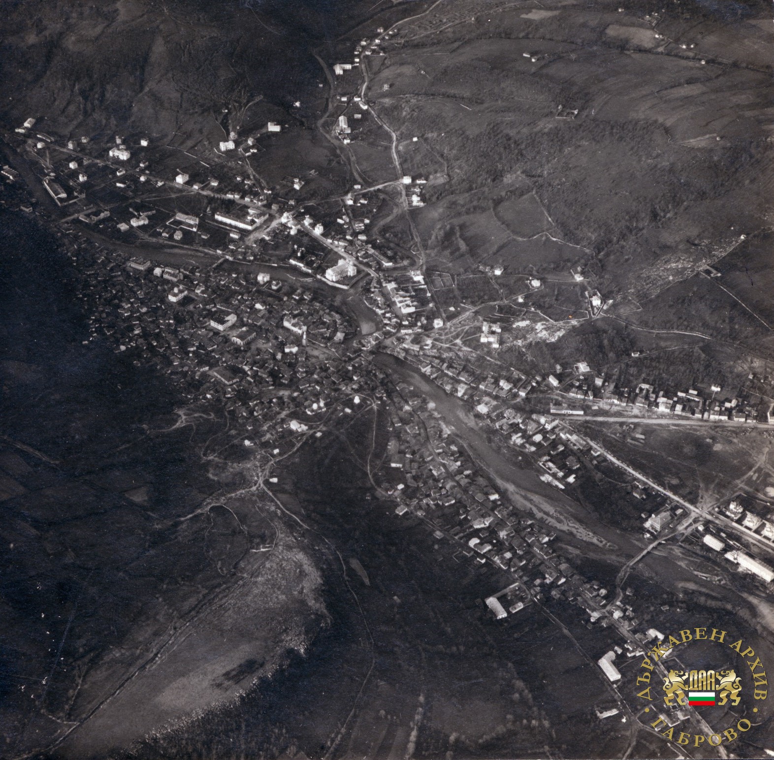 Въздушна снимка на Габрово, направена от дирижабъл тип „Цепелин” по време на Първата световна война, 1916 г.